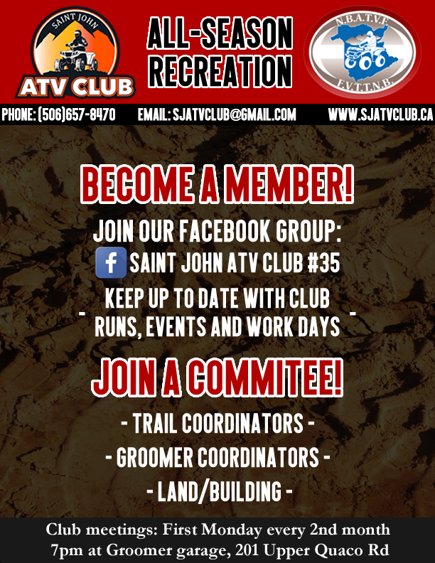 You will find Trail Maps, Club Posters and other interesting information for the Saint John ATV Club below: MAPS QUAD NB TRAIL MAPS Shelter Locations (GPS Co-ordinates) POSTERS Club Poster DOCUMENTS The Rider Behind You Share this: Click to share on X (Opens in new window) X Click to share on Facebook (Opens in new window) Facebook Like Loading...